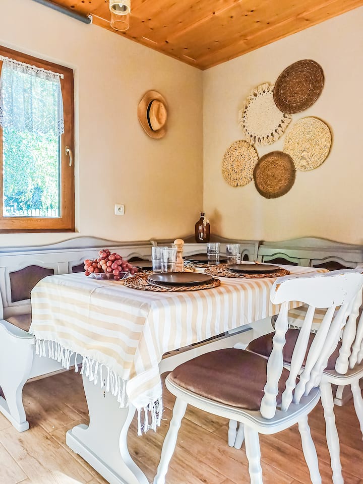 带2间卧室和按摩浴缸的小屋。