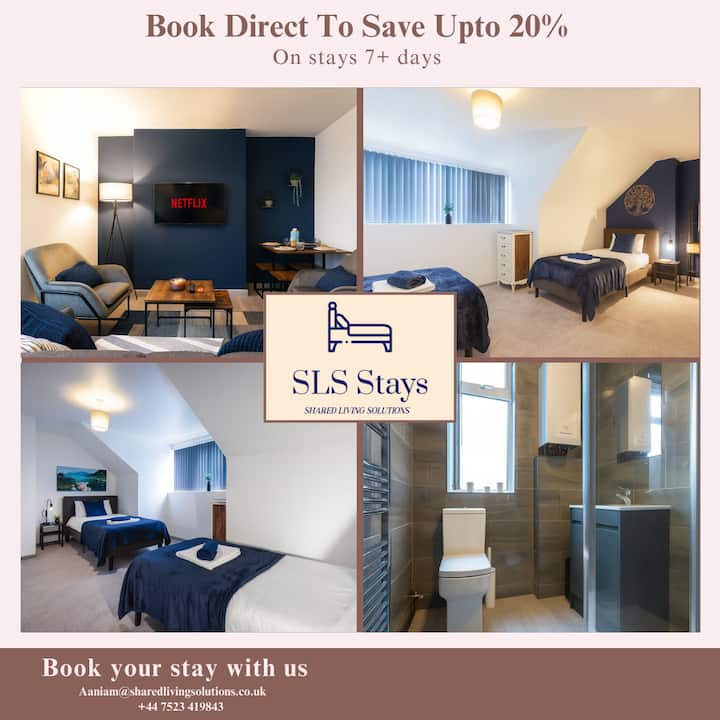 如需更多折扣、定制预订或长期住宿,请联系我们: slsstays .co . uk 或 +44 752 341 9843。