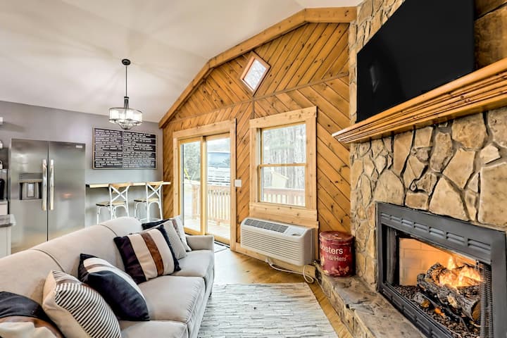 带环绕式门廊和壁炉的 1 卧室森林小木屋
