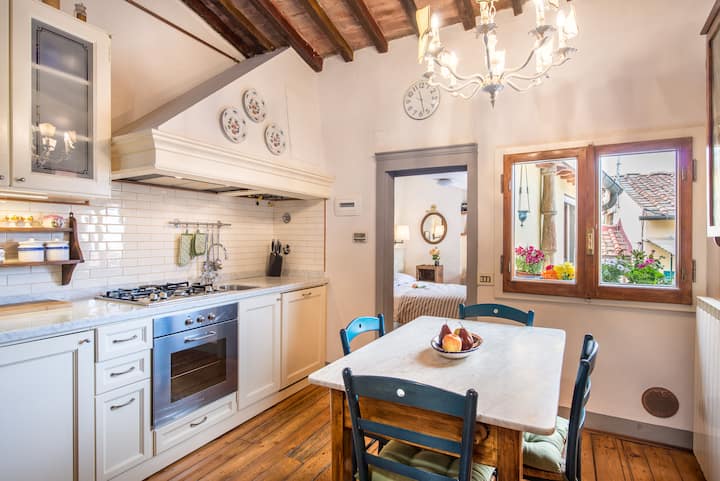 我叫Claudia,出生在托斯卡纳,搬到佛罗伦萨学习艺术史。 我立刻爱上了这座城市,从那时起,我就不想离开。 我在这里生活和工作了将近30年,我仍然对它的美丽和历史感到惊讶/惊叹/喘不过气来。我从一位名叫Gabriele的意大利艺术家那里购买了我的公寓,他将其用作工作室,房间仍然反映了艺术家绘制艺术品所需的相同布局。 从我看到公寓的那一刻起,我就一见钟情,我意识到它一定是我的。 这套位于Via Fiesolana的公寓是我多年来难忘的家,我真心希望我的房客能体验到我在这套公寓里感受到的幸福感。