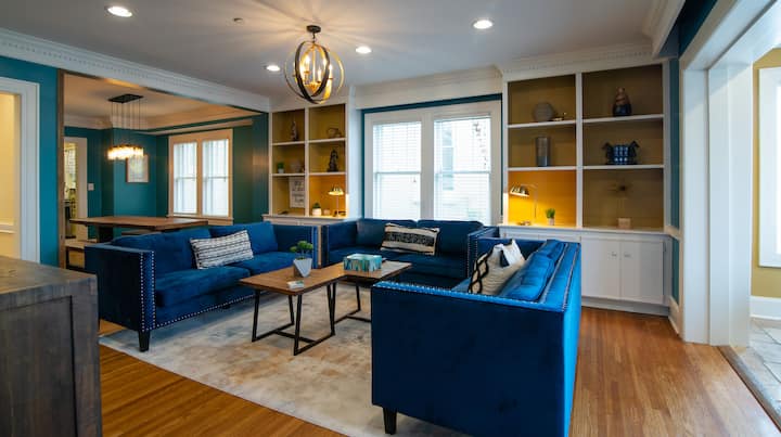 位于市中心,距离B工作室仅3个街区,入住经过精心改造的复古房屋,享受纳什维尔的一切精彩。此房源非常适合公司度假和家庭聚会。 房源共有 12 间卧室,可供 32 人入住。