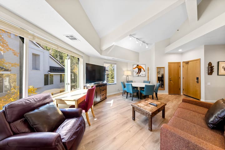 客厅设有新沙发和木地板,景色和氛围都很棒。距离Palisades Tahoe Village仅几步之遥,可轻松前往该村用餐和享受雪地活动,距离太浩湖和太浩市仅几步之遥,这意味着340号公寓是您在北太浩度假的理想场所。