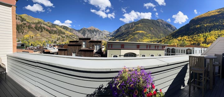 入住这套现代化的2卧室、2.5卫生间顶层公寓,位于特柳赖德(Telluride)的中心地带,可欣赏全景山景。