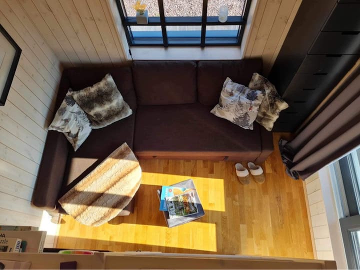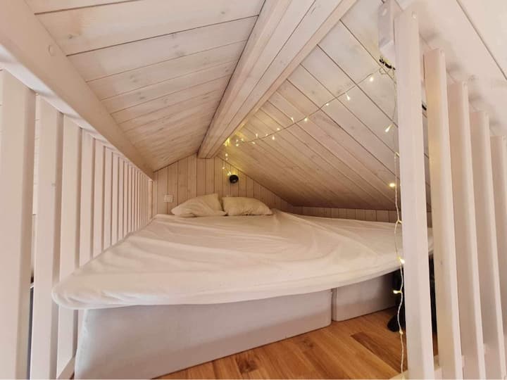 带有浴缸的舒适小屋