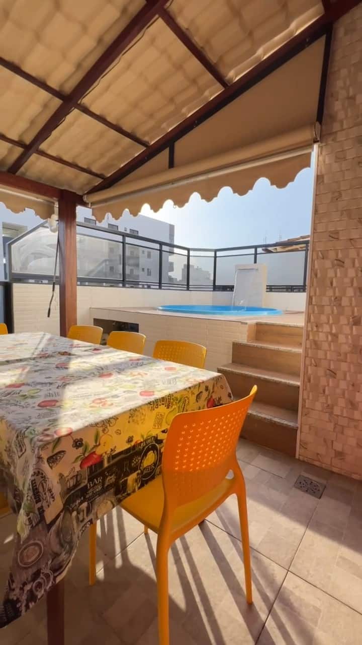 3卧室复式公寓,带空调、游泳池和私人烧烤区