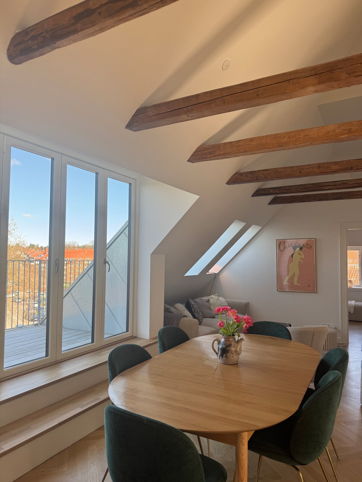 在这个宁静且位于市中心的住宿中享受自己的入口。 您有自己的厨房、卫生间、卫生间、一间带双人床的阁楼和一张沙发床,可转换成另一张双人床,可供两人入住。 还有一个私人庭院,距离Lyngby充满活力的购物和咖啡馆场景仅一步之遥。 距哥本哈根仅15公里,乘坐火车16分钟即可抵达。