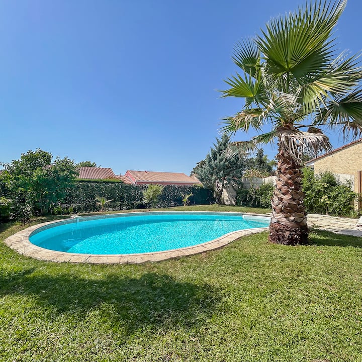 靠近市中心,带游泳池和花园的小屋