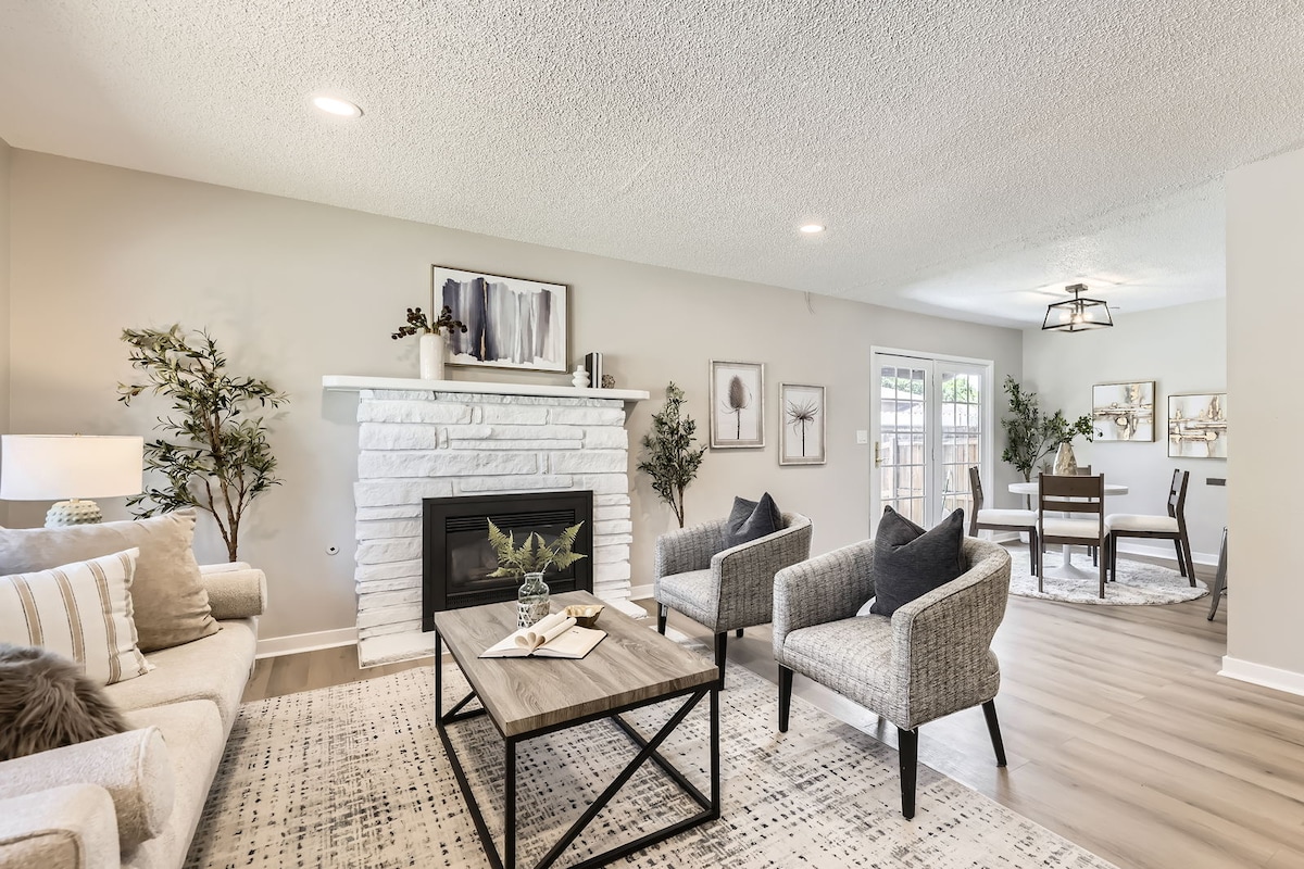 This walkout basement is like a fully furnished apartment; totally independent, nothing is shared with our guests. Has it's own (private): large furnished kitchen, dining table, fridge, TV(Netflix, Prime, HULU, Disney+, ESPN2..) bathroom, outdoor fire place, washer&dryer, 2 queen (one of which is sofa bed) and 1 twin beds. It is located in a peaceful newly built neighborhood with in couple of miles to Southland mall, recreation center and close to Airport. Has its own private access and gate.