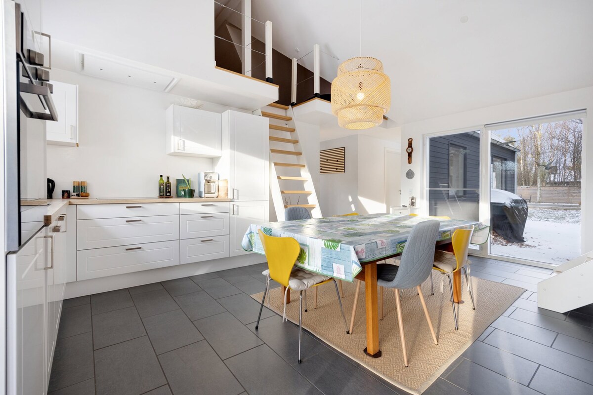 这栋漂亮的房子于2023年进行了翻新。房子明亮,空间宽敞,适合全家入住,也适合情侣度周末。 有许多很棒的设施,如野外浴缸、燃气烤架、花园游戏和活动桌。度假屋设有漂亮的露台和休息区。房源距离森林和一个很好的海滩仅10分钟步行路程 房子在您抵达前已加热 房子内包括: - 床单 -毛巾 -盐/油等 -咖啡/茶 您只需自带木柴