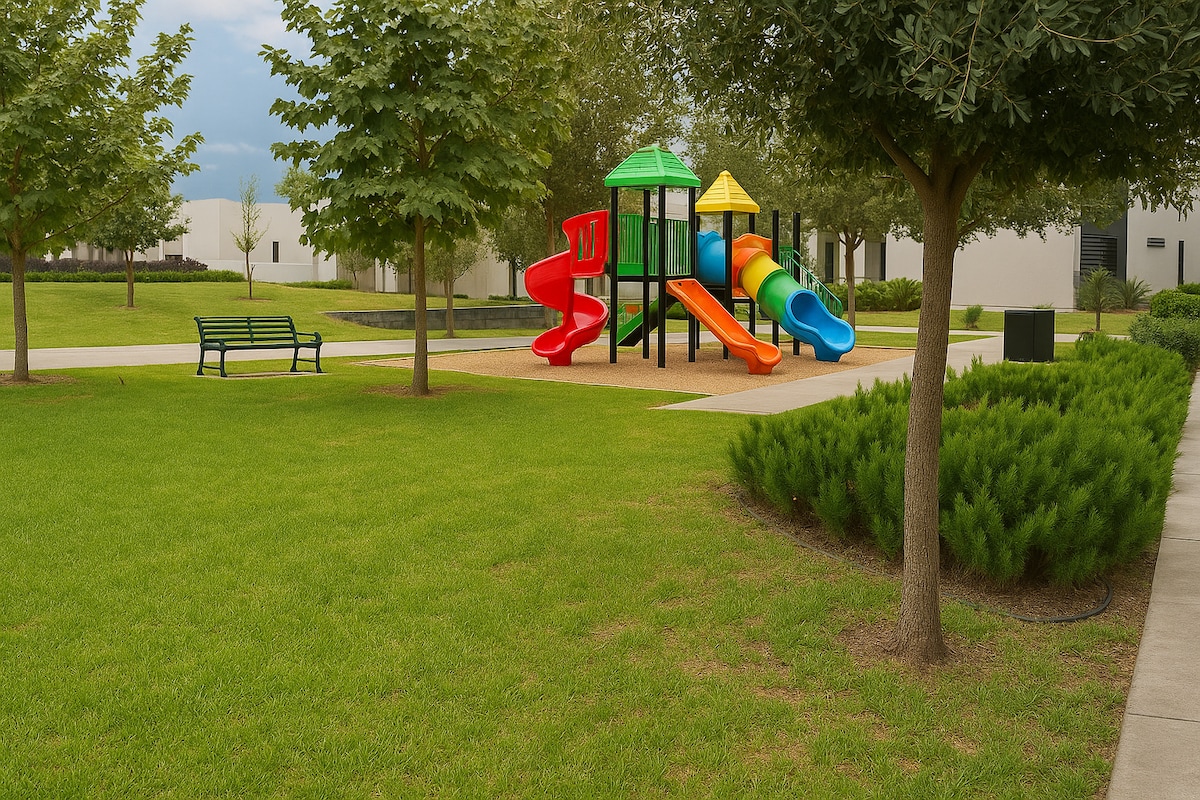 入住宁静祥和的房源,与全家人一起放松身心。 这栋房子位于一个角落,有多余的空间,有一个小绿地和另一个烧烤区,可以在好公司度过一个下午/晚上的烧烤。 它位于该区的警卫室对面,房子前面有一座公园。
